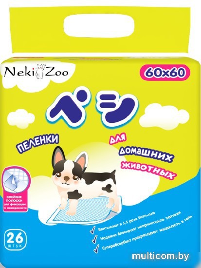 | Информация | Супервпитывающие пеленки для домашних животных NekiZoo® с инновационной структурой и оптимально подобранным составом - лучший помощник в дрессуре щенков и гигиеническом уходе за взрослыми животными дома, в дороге, в ветклинике. Устойчивый к царапинам и повреждениям верхний слой быстро впитывает, не давая влаге растекаться по поверхности. Впитывающий слой способен удерживать значительное количество жидкости. Нижний слой надежно защищает от протекания и препятствует появлению конденсата. |