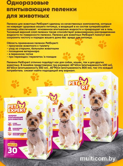 | Информация | ? Одноразовые впитывающие пеленки для животных размером 60x40 см (30 штук) изготовлены из качественных компонентов, безопасных для здоровья вашего питомца. Суперабсорбентный полимер обеспечивает мгновенное впитывание жидкости и превращает ее в гель, а тисненый верхний слой способствует равномерному распределению жидкости по поверхности пеленки. Пеленки помогут поддерживать чистоту и порядок в доме без вреда для питомца. ? Область применения пеленок: - приучение животного к туалету; - уход за старыми, больными животными; - посещение ветеринара; - в переноске/лотке; - при переездах/перелетах/в поездке. ? Подходят для собак, кошек и других животных. |