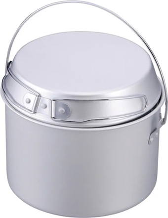 | Информация | Алюминиевый котелок используется для приготовления пищи в туристических походах, любителями пикников и активного отдыха на природе. Для подвешивания над костром или для переноса посуда имеет удобную ручку. Корпус с плоским дном позволяет использовать его как в походных, так и в домашних условиях на газовых и электрических плитах. Крышка является сковородой со складной ручкой. |