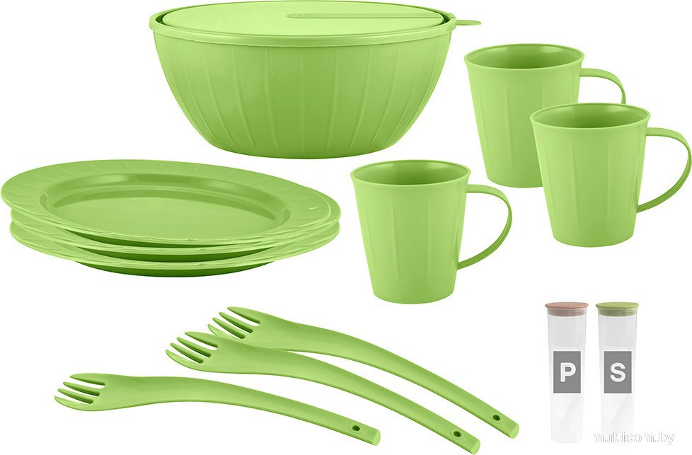 | Состав набора | тарелка (3 шт.), вилка (3 шт.), салатник, кружка (3 шт.), емкость (для специй, 2 шт.) |