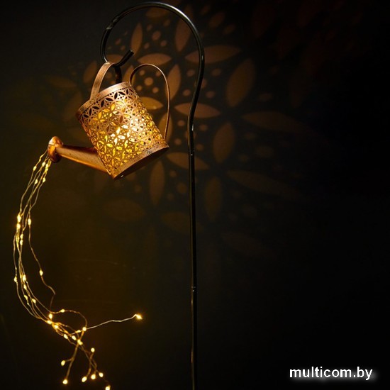 | Информация | Особенности: ?На солнечной батарее — не нужно подсоединять к источнику питания. ?Влагозащита IP44 — для использования на улице. ?Встроенный аккумулятор — заряжается днем и светит ночью. ?До 8 часов свечения при полной зарядке аккумулятора. ?Размер украшения "лейка" — 22.5х9.8х16.5 см. ?6 гирлянд длиной 55 см. ?Цвет свечения — теплый белый. ?Индекс цветопередачи — >80. ?Режим работы — мигание (гирлянды) и постоянное горение (лейка). |