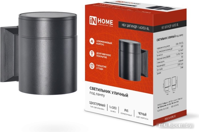 | Информация | ? Уличный настенный светильник In Home GX53S-1B-Цилиндр предназначен для работы со светодиодными лампами GX53. ? Светильник предназначен для фасадной подсветки загородных домов, коттеджей, ресторанов, инсталляций. ? Благодаря современному дизайну, лаконичной форме и нестандартному световому эффекту, он станет идеальным решением для акцентного освещения общественных зданий и частных загородных коттеджей. ? Светильник имеет разборный корпус для установки светодиодной лампы. ? Корпус защищен специальной прокладкой, которая предотвращает проникновение влаги и защищает от запотевания. |
