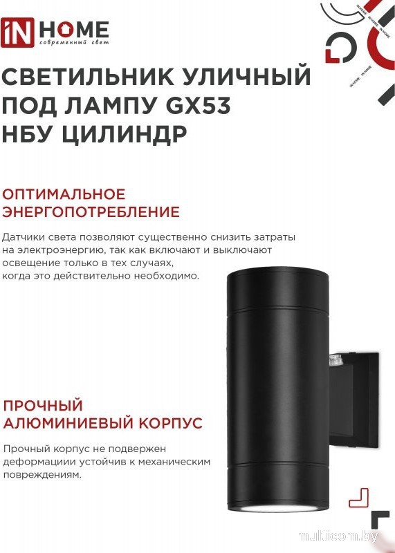 | Информация | - Светильники серии ЦИЛИНДР-GX53 с датчиком освещения предназначены для фасадной подсветки загородных домов и коттеджей. - Датчик освещения позволяет светильнику автоматически включаться в темноте и выключаться в светлое время суток, что обеспечивает оптимальное энергопотребление. - Активация датчика освещения производится снятием защитного колпачка с датчика освещения, отключение датчика освещения осуществляется установкой на него светонепроницаемого колпачка, входящего в комплект светильника. - Прочный алюминиевый корпус оборудован герметичной прокладкой, которая защищает от проникновения влаги и пыли, а также от запотевания. - Долговечное покрытие защитит светильник от атмосферных осадков и колебаний температур. |
