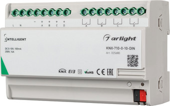 | Информация | Конвертер KNX-0/1-10V с выходами: 4 релейных выхода по 16А, 4 выхода 0/1-10V для управления драйверами, диммерами, клапанами и пр. Совместим как устройствами 1-10 с активным входом, а так же с устройствами 0-10 с пассивным входом. Установка на DIN-рейку. Питание 230V. |