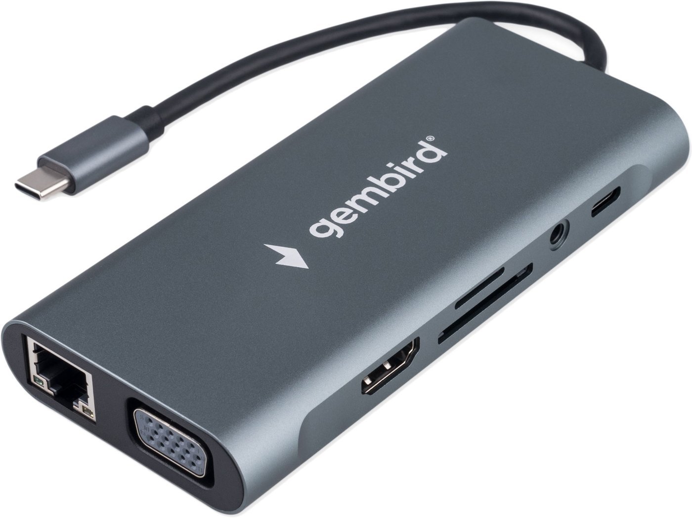 | Все разъемы на адаптере | USB-A 3.2 Gen1 (5 Гбит/с), HDMI, VGA, RJ-45, USB-C (только для зарядки), 3.5 мм jack |