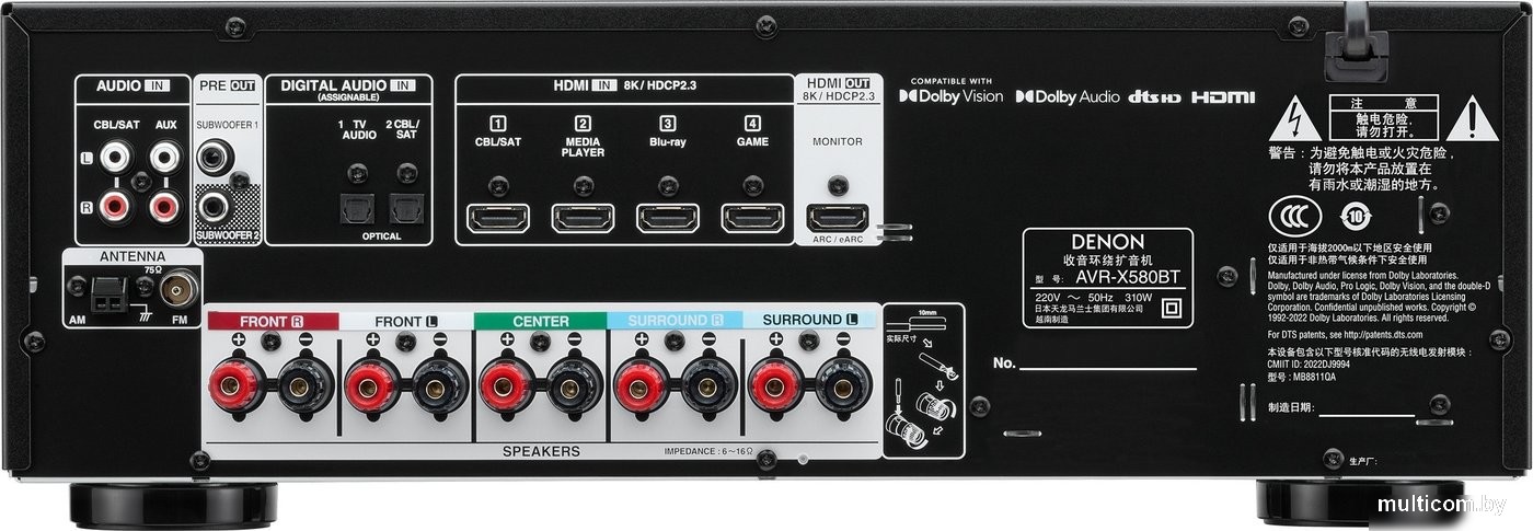 | Информация | ??Текст описания переведен при помощи искусственного интеллекта. - С мощностью до 130 Вт на канал, достаточно энергии для воспроизведения качественного звука с любых динамиков. - Превратите фильмы в реальность в небольших помещениях с потрясающим качеством изображения 8K и полным объемным звуком, верным оригинальной записи звуковой дорожки. - AVR-X580BT поддерживает Dolby Vision, HDR10+ и предлагает четыре HDMI-входа и один выход с последними спецификациями HDMI. Дизайн с 5.2 каналами обеспечивает полноценный объемный звук, а вы можете беспроводным способом стримить свои любимые музыкальные треки через Bluetooth. - Награжденный помощник по настройке Denon делает настройку Denon AVR-X580BT такой же простой, как и его использование. |