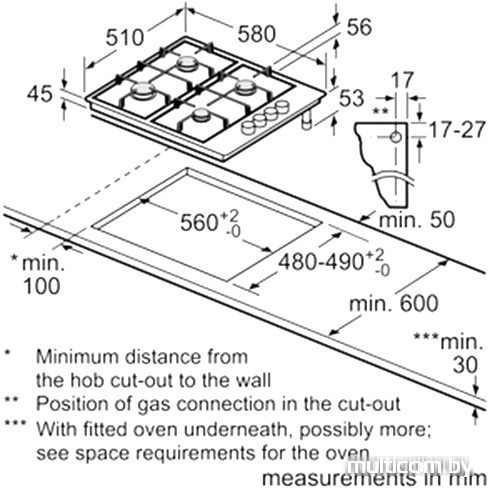 Размеры ниши для встраивания | |
