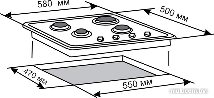 | Подробная информация о конфорках | 1 х 3.0 кВт (дальняя правая); 2 х 1.75 кВт (дальняя левая и ближняя правая); 1 х 1.0 кВт (ближняя левая) |