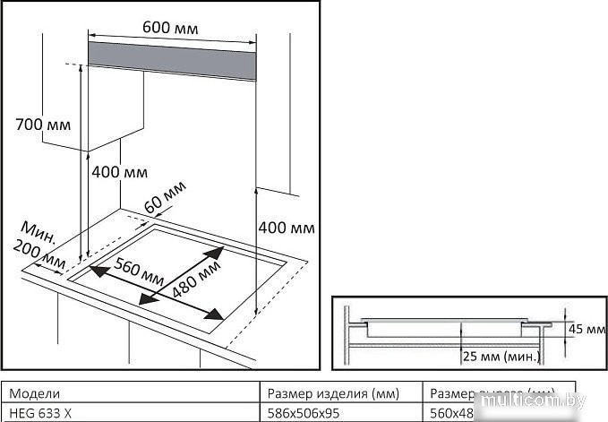 | Размеры ниши для встраивания | |