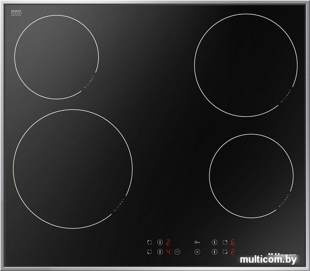 | Подробная информация о конфорках | Передняя левая зона нагрева, см: 21Задняя левая зона нагрева,см: 14,5Передняя правая зона нагрева,см: 14,5Задняя правая зона нагрева,см: 18- нагревательное поле: 2 x O 145 мм 1200 Bт- нагревательное поле: 1 x O 180 мм 1800 Bт- нагревательное поле: 1 x O 210 мм 2300 Bт |