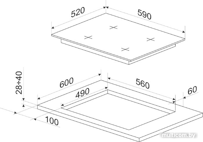 | Подробная информация о конфорках | 2800 Вт 1800 Вт 1800 Вт 1000 Вт |