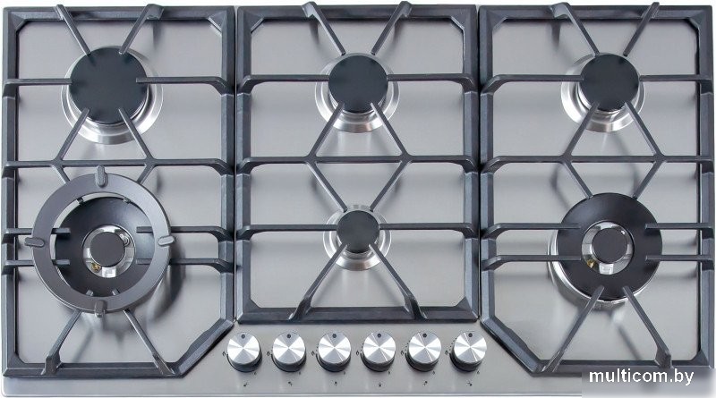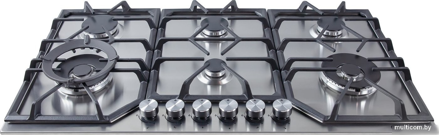 | Подробная информация о конфорках | 6 газовых конфорок: 2 wok-горелки 4800 Вт 1 конфорка повышенной мощности 2600 Вт 2 стандартные конфорки 1600 Вт 1 конфорка 1000 Вт |