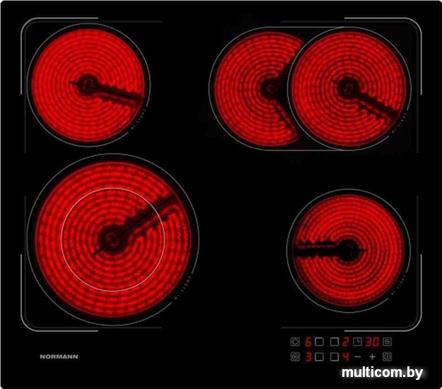 | Подробная информация о конфорках | Передняя левая зона нагрева (Двойная 13-23см) 1100-2200ВтПередняя правая зона нагрева (16,5см) 1200ВтЗадняя левая зона нагрева (16,5см) 1200ВтЗадняя правая зона нагрева (Овальная 27*16,5см) 1100-2000Вт |