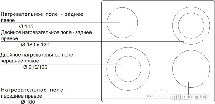 | Овальные/прямоугольные конфорки | Нет |