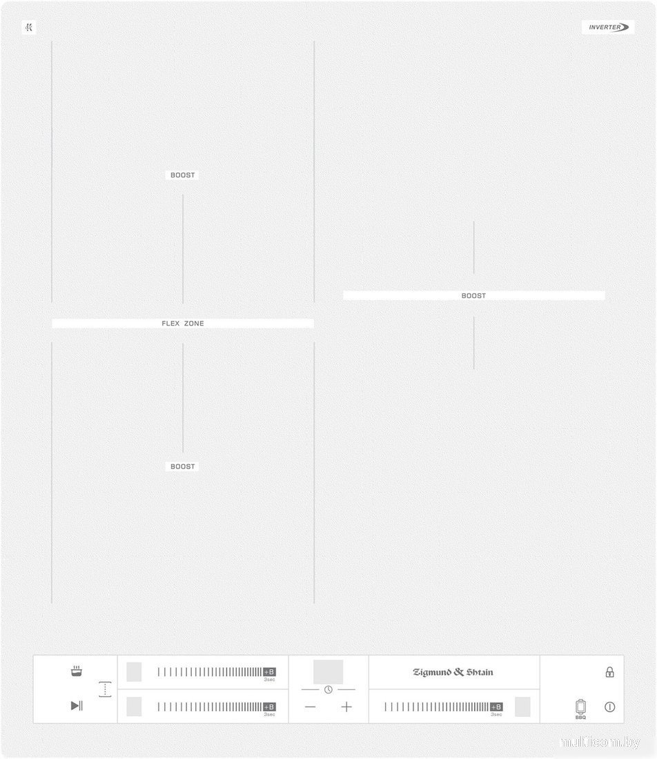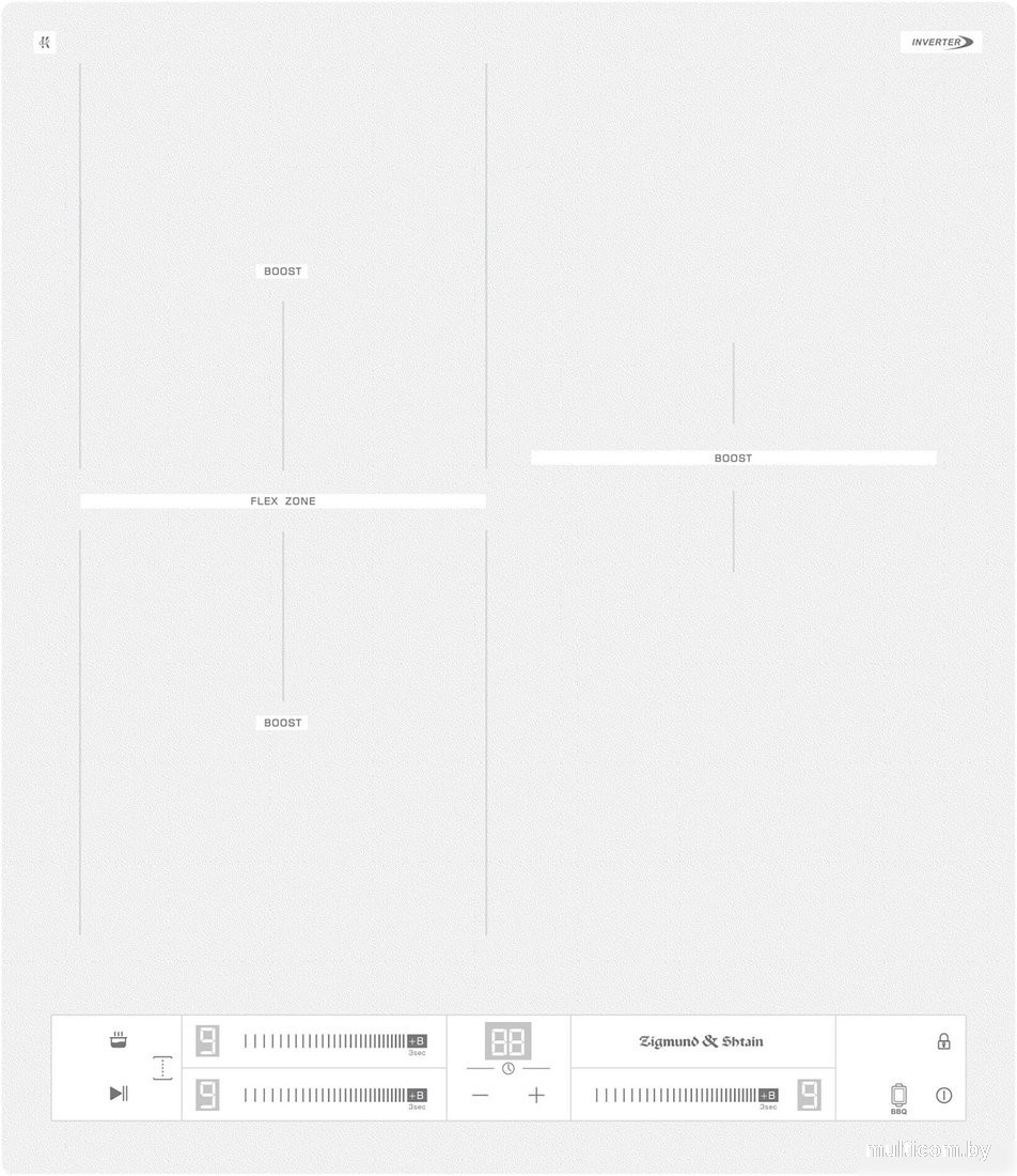 | Подробная информация о конфорках | Ближняя левая 180 мм, 1900/2200 Дальняя левая 180 мм, 1300/1500 Левая Flex-зона 180*380 мм, 3000/3600 Дальняя правая 180 мм, 2300/2600 |