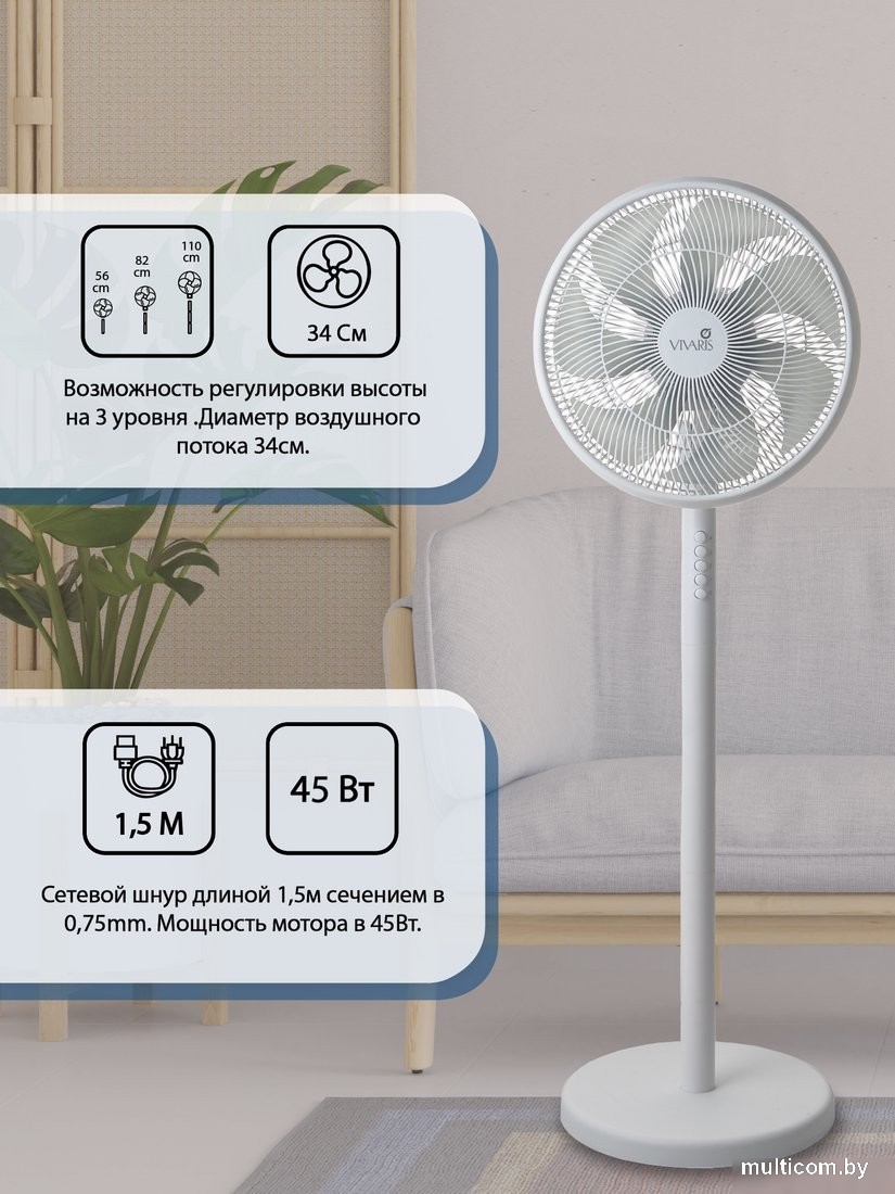 | Информация | ??Текст описания составлен при помощи искусственного интеллекта. - Вентилятор Vivaris VAF W034 057 — это идеальное решение для создания комфортного микроклимата в вашем доме или офисе. С его помощью вы сможете наслаждаться свежим воздухом даже в самые жаркие дни. Направление вращения горизонтальное, что позволяет эффективно распределять поток воздуха по всему помещению. - Удобная регулировка наклона и высоты вентилятора позволяет настроить его под ваши индивидуальные предпочтения. Вы сможете легко направить поток воздуха именно туда, где он вам нужен, а также адаптировать высоту устройства под разные условия. - С мощностью 45 Вт и четырьмя скоростями обдува, этот осевой вентилятор обеспечивает отличную производительность. Вы сможете выбрать оптимальный режим работы в зависимости от температуры и ваших предпочтений. - Обратите внимание на длину сетевого шнура — 1.5 метра, что позволяет удобно разместить вентилятор в любом уголке комнаты. - Легкий и компактный, весом всего 3.45 кг, Vivaris VAF W034 057 легко перемещается, что делает его идеальным выбором для тех, кто ценит мобильность. Пластиковый корпус и лопасти обеспечивают долговечность и простоту в уходе. - Этот вентилятор станет незаменимым помощником в борьбе с жарой, обеспечивая комфорт и свежесть в вашем пространстве. Не упустите возможность сделать свой дом более уютным и прохладным! |