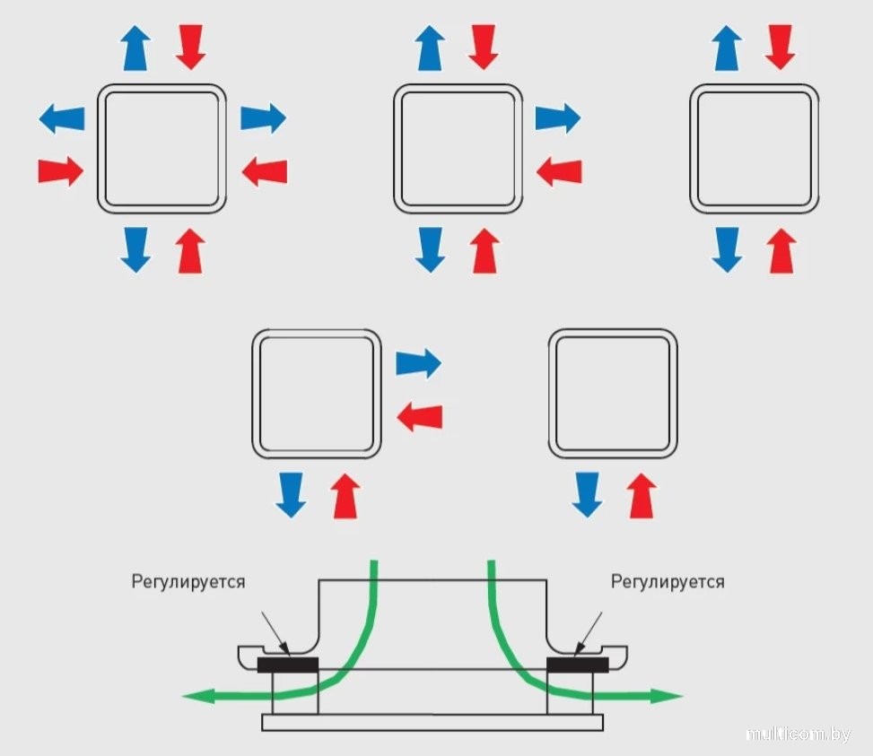 При использовании в приточных системах возможна настройка направления и длины струи.