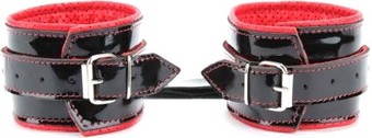 | Информация | Наручники выполнены из натуральной лакированной черной кожи. Декорированы заклепками. Наручники надежно фиксируются пряжками, ремнями, позволяющими выбрать нужный размер. Нежный подклад из красной кожи обеспечивает комфорт, кожаное соединение на карабинах фиксирует наручники вместе. |