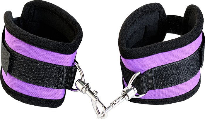 | Информация | Наручники фиолетовые неопреновые. Мягкие манжеты с застежкой велкро, позволяющей максимально регулировать объем. Между собой наручники соединены карабинами. |