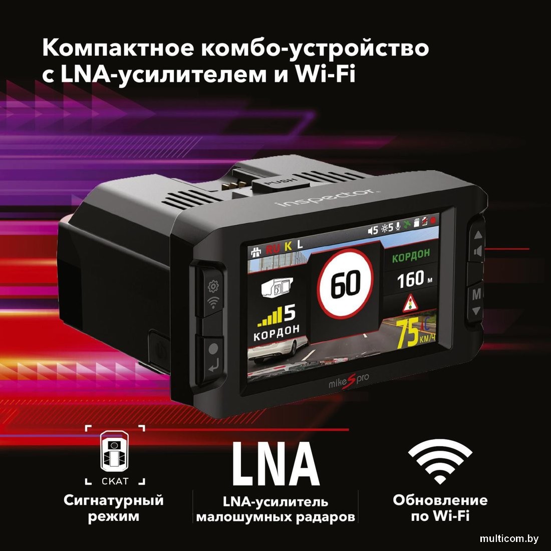 | Информация | INSPECTOR Mike S pro – это сигнатурное комбо-устройство нового поколения, включающее в себя большое количество инноваций: • Модуль LNA (Low Noise Amplifier) - это усилитель сигналов радарных комплексов К-диапазона и лазерных измерителей скорости. Результатом его применения является увеличенная дистанция приема сигналов радаров, включая установленных "в спину". А также уверенный прием сигналов новых маломощных радарных комплексов, распространяющихся как на территории РФ, так и странах ближайшего зарубежья (Узбекистан, Казахстан, и др.); • Рупорная антенна нового поколения - разработана специально для использования с модулем LNA для повышения чувствительности детектирования; • Усовершенствованный лазерный приемник - разработан специально для использования с модулем LNA, обладает увеличенной дистанцией детектирования, что играет ключевую роль при приеме сигналов лазерных измерителей скорости; • Сигнатурная технология предназначена для снижения количества ложных оповещений в К-диапазоне с помощью распознавания сигналов радаров и сопоставления их с заложенной в память устройства обновляемой библиотекой сигнатур; • Полноцветный ЖК-экран с диагональю 2,45" высокого разрешения для комфортного отображения обширной информации из базы радаров и камер, включающей в себя ограничение скорости, тип радаракамеры, расстояние до места установки и объекты контроля. Поворотное на 360? градусов крепление с активным питанием, кабель питания подключается к креплению без необходимости его отключения; • Встроенный Wi-Fi модуль позволяет установить связь со смартфоном на базе Android или с iPhone, чтобы с помощью официального приложения иметь возможность обновить программное обеспечение или базу радаров и камер, не выходя из автомобиля. Помимо этого, приложение позволяет просмотреть видеозаписи или внести изменения в настройки устройства. Читать дальше |