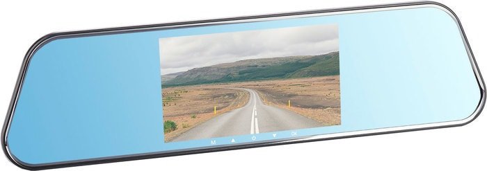 | Информация | Это зеркало заднего вида с двумя камерами: основная записывает всё происходящее впереди машины, а дополнительная ‒ сзади. В выключенном состоянии он отличается от обычного зеркала только наличием кнопок и более широким обзором. Регистратор выполнен в изящном металлическом корпусе |