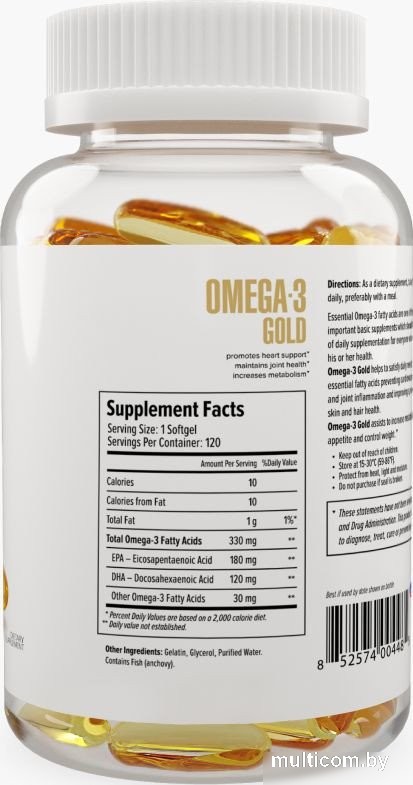 | Дозировка | Рекомендации по применению: для комплексной поддержки организма принимайте добавку Omega-3 Gold по 1 капсуле от 1 до 3 раз в день, желательно во время еды. Максимальный эффект достигается благодаря регулярному приему Омеги-3 курсами продолжительностью от |