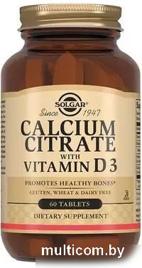 Информация | Таблетки «Цитрат кальция с витамином D3» рекомендуются в качестве дополнительного источника кальция и витамина D. Они содержат кальций в органической легкоусвояемой форме, а также витамин D3, который повышает доступность кальция в организме. Кальций участвует в профилактике остеопороза (заболевания, при котором кости теряют свою прочность), необходим для поддержания стабильной сердечной деятельности, осуществления процессов передачи нервных импульсов. Цитрат кальция, в отличие от карбоната кальция, усваивается в организме даже при пониженной кислотности желудка. Витамин Д3, представленный в виде холекальциферола, способствует усвоению кальция костной тканью. Рекомендации по применению: Взрослым по 1 таблетке 3 раза в день во время еды. Состав Кальций (цитрат кальция) - 250 мг Витамин D3 (холекальциферол) - 150 МЕ БАД. Не является лекарственным средством. Состав Кальций (цитрат кальция) - 250 мг Витамин D3 (холекальциферол) - 150 МЕ Полный состав: Цитрат кальция, микрокристалическая целлюлоза (эмульгатор), растительная целлюлоза ([кроскарамеллоза] стабилизатор, [гидроксипропилметилцеллюлоза] загуститель), магниевая соль стеариновой кислоты (антислеживающий агент), диоксид кремния (антислеживающий агент), глицерин (агент влагоудерживающий), карнаубский воск (глазирователь), холекальциферол (витамин D3). Рекомендации по применению Взрослым по 1 таблетке 3 раза в день во время еды. Противопоказания Индивидуальная непереносимость компонентов. Беременным и кормящим женщинам принимать по рекомендации и под наблюдением врача. Бренд Solgar (Солгар) - всемирно известный производитель высокоэффективных натуральных препаратов для здоровья. Таблетки «Цитрат кальция с витамином D3» рекомендуются в качестве дополнительного источника кальция и витамина D. Они содержат кальций в органической легкоусвояемой форме, а также витамин D3, который повышает доступность кальция в организме. Кальций участвует в профилактике остеопороза (заболевания, при котором кости теряют свою прочность) участвует в процессе свертывания крови и поддержании сердечной деятельности, передачи нервных импульсов. Витамин Д3, представленный в виде холекальциферола, способствует усвоению кальция костной тканью. Достаточное потребление кальция требуется во все периоды жизни, в начале — для достижения высокого пика костной массы, затем — для её сохранения, в дальнейшем — для профилактики потерь, поскольку с возрастом начинается естественное вымывание кальция из костей. Это может привести к развитию остеопороза - заболеванию, при котором кости теряют свою прочность, становятся более хрупкими и могут легко ломаться. Однако на формировании костной ткани роль кальция не заканчивается. Кальций является важнейшим компонентом свертывающей системы крови, необходим для поддержания стабильной сердечной деятельности, осуществления процессов передачи нервных импульсов. Цитрат кальция, в отличие от карбоната кальция, усваивается в организме даже при пониженной кислотности желудка. Кальций — один из важнейших минералов для человека, при этом практически 99% всего кальция, находящегося в организме человека, содержится в костной и хрящевой тканях и только около 1% кальция содержится внутри клеток мягких тканей и во внеклеточной жидкости. Основным источником кальция явля