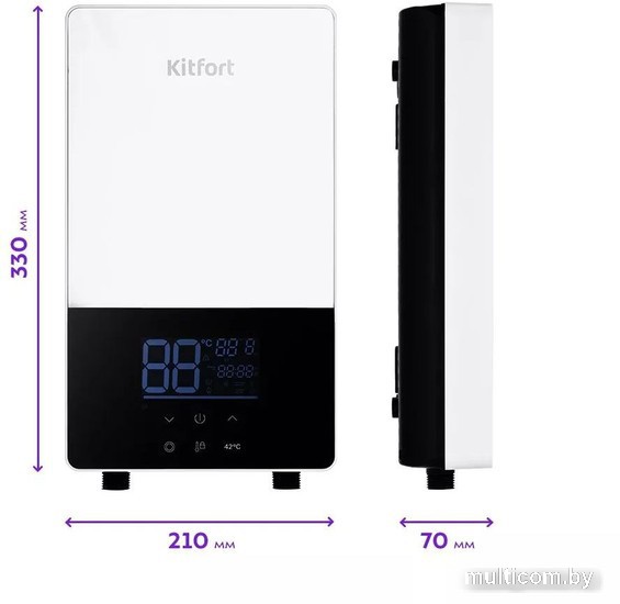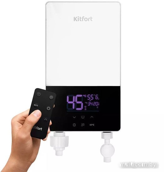| Информация | Проточный водонагреватель Kitfort КТ-6034 предназначен для мгновенного нагрева холодной проточной воды до 55 °C. Он отлично впишется в любой интерьер, имеет простое, наглядное управление и прост в установке. Габариты проточного водонагревателя позволяют без проблем поместить его в любом удобном месте. На случай, когда отключат горячую воду или та полностью отсутствует. Благодаря лёгкому весу водонагреватель можно крепить на стену даже из гипсокартона. Вы сможете легко задать температуру горячей воды с помощью сенсорной панели управления. Или нажатием одной кнопки мгновенно установить наиболее комфортную температуру. LED-дисплей на передней панели подробно отобразит все активные параметры. Не проблема, если вам нужно настроить водонагреватель в отдаленном месте. Удобный пульт ДУ поможет вам с этим. Задайте с помощью него комфортную мощность и температуру нагрева или задайте автоматические настройки.? Водонагреватель укомплектован вентилем регулировки напора воды, а также защитной муфтой от поражения электрическим током в случае, если вода оказалась под напряжением. Для корректной работы устройство должно питаться через выделенную линию 32 А. Вам не придётся беспокоиться об установке обогревателя на стене. В комплекте прилагается удобное крепление крючкового типа со всеми комплектующими. Просто установите крепление в нужном месте и повесьте на него проточный водонагреватель! |