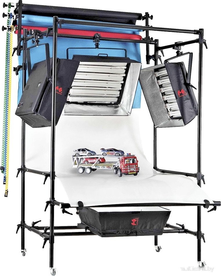| Информация | - Готов к ежедневной работе Для ежедневной коммерческой рекламной и предметной съемки требуется надежный фотостол, отвечающий требованиям профессионалов. Falcon Eyes STL-1324 – состоит из прочного алюминиевого каркаса, модулей для крепления осветителей, консолей для установки системы подъема фонов и специального светопропускающего полотна. - Размер полотна 130х240 см, высота от пола до рабочей поверхности 80 см, размеры стола 155х250х170 см. - Прочный каркас для любого оборудования Конструкция стола позволяет закрепить осветители как сверху полотна, так и снизу (осветители приобретаются дополнительно). Каркас изготовлен из алюминиевых трубок диаметром 35 мм, выдерживает большие нагрузки и дает возможность использовать любой, даже самый тяжелый осветитель. - Удобство использования На ножках стола установлены колеса со стопорами, это обеспечит мобильность конструкции и устойчивость при съемке.На каркасе размещены специальные консоли-держатели фона, на них устанавливается система подъема фонов намотанных на картонную тубу (фоны и система подъема приобретаются отдельно). - Настоящие цвета Белое светопропускающее полотно толщиной 4 мм устойчиво к нежелательным изгибам, обеспечивает оптимальное бестеневое освещение и ежедневную потоковую съемку сложных предметов без дорогостоящей ретуши. Полотно бесцветное и не искажает цветовую температуру. - Съемка без тени Никакая часть конструкции рамы не пересекает снизу и не прикасается к полотну в зоне размещения объекта, благодаря этой особенности и изгибу передней части листа становится возможной полностью бестеневая съемка. |