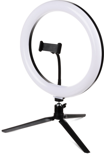 | Информация | Раздвижная конструкция держателя способна надёжно зафиксировать большинство современных моделей телефонов с шириной корпуса от 55 до 80 мм. Удобный пульт управления на кабеле питания позволяет легко переключаться между 10 уровнями яркости и тёплой, нейтральной или холодной температурой свечения. Что существенно облегчает правильную цветопередачу оттенка окрашивания волос, маникюра или макияжа. Изготовление из ABS-пластика и металла, что обеспечивает новинкам прочность и длительный срок службы. При необходимости «настольная» лампа легко превращается в источник заливающего освещения при макросъёмке зеркальной камерой: нужно лишь отсоединить штатив и держатель. USB-разъём на питающем кабеле позволяет подключаться к совместимому адаптеру или power bank. |