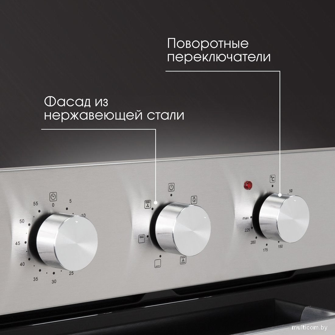 | Информация | Электрический встраиваемый духовой шкаф Zigmund & Shtain E 172 представляет собой современное решение для компактной кухни, предлагая высокую эффективность и удобство использования. Благодаря наличию всех необходимых функций в нем можно приготовить самые разнообразные блюда: выпечку, запеченное мясо или рыбу, овощи и многое другое. Объем камеры в 51 л с 5 уровнями установки противня на хромированных боковых направляющих позволит приготовить блюда любых размеров: запечь курицу целиком или испечь пирог на большую семью. В комплекте есть противень и съемная решетка. Универсальный дизайн E 172 легко впишется в любой кухонный интерьер. Эмаль Easy Clean не имеет пор, в которых могла бы застрять пища или жировые брызги, что значительно упрощает процесс поддержания духовки в чистоте. Удобное управление с помощью поворотных переключателей с плавной регулировкой температуры. Стальные ручки обладают высокой степенью стойкости к коррозии и механическим повреждениям. Дверца с двойным стеклом и холодным фронтом обеспечит качественную термоизоляцию и минимизирует риск обжечься во время эксплуатации. Стекла можно легко снять. · 6 функций (гриль, гриль с конвекцией, нижний нагрев, верхний и нижний нагрев, верхний и нижний нагрев с конвекцией, подсветка) помогут подобрать оптимальный способ приготовления как сложных рецептов, так и самых любимых блюд на каждый день. |