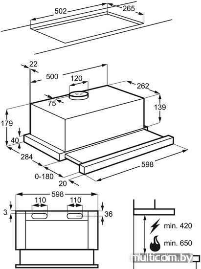 | Минимальная производительность отвода | 160 куб. м/ч |