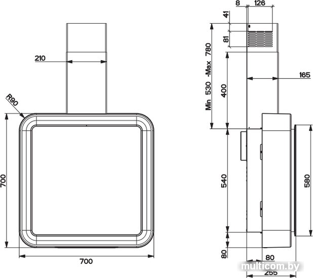 | Минимальная производительность отвода | 180 куб. м/ч |