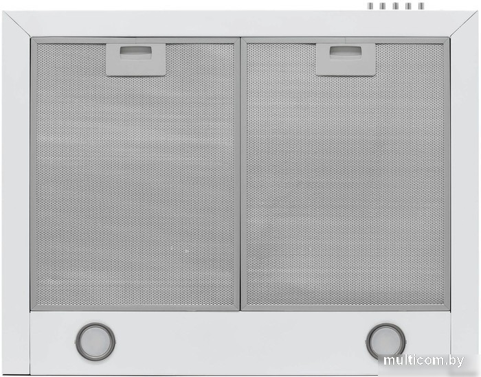 конструкция купольная, монтаж настенный, ширина 59.5 см, управление механическое/кнопочное, производительность мотора 650 м?/ч, цвет белый