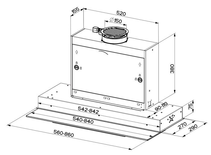 | Минимальная производительность отвода | 260 куб. м/ч |