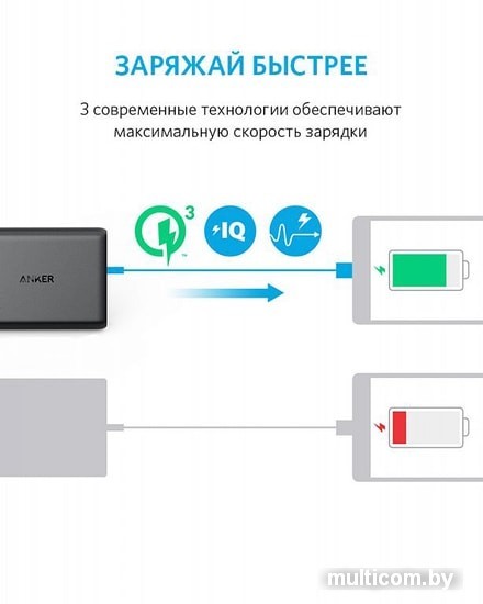 | Технология быстрой зарядки | Anker PowerIQ, Qualcomm Quick Charge 3.0 |