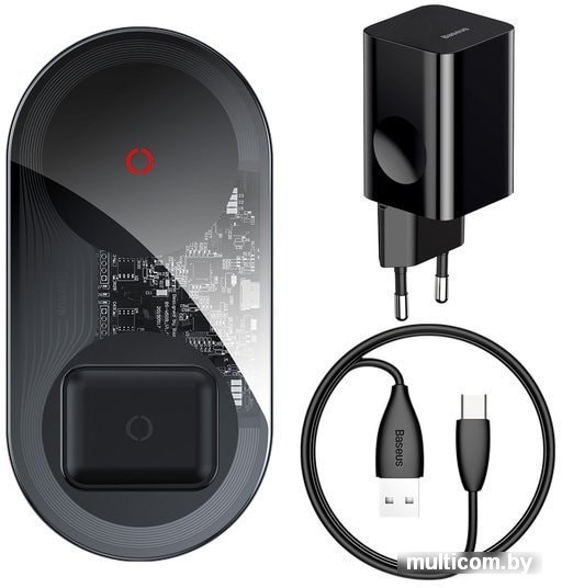 | Информация | Беспроводное зарядное устройства для двух портативных девайсов, например смартфона и наушников. Оно имеет компактный корпус, который не займет много пространства. Поддержка функции быстрой зарядки. Максимальная выходная мощность устройства достигает 20 Вт.В комплект поставки входит:- беспроводное зарядное устройство;- сетевое зарядное устройство;- кабель USB Type-C;- документация. |