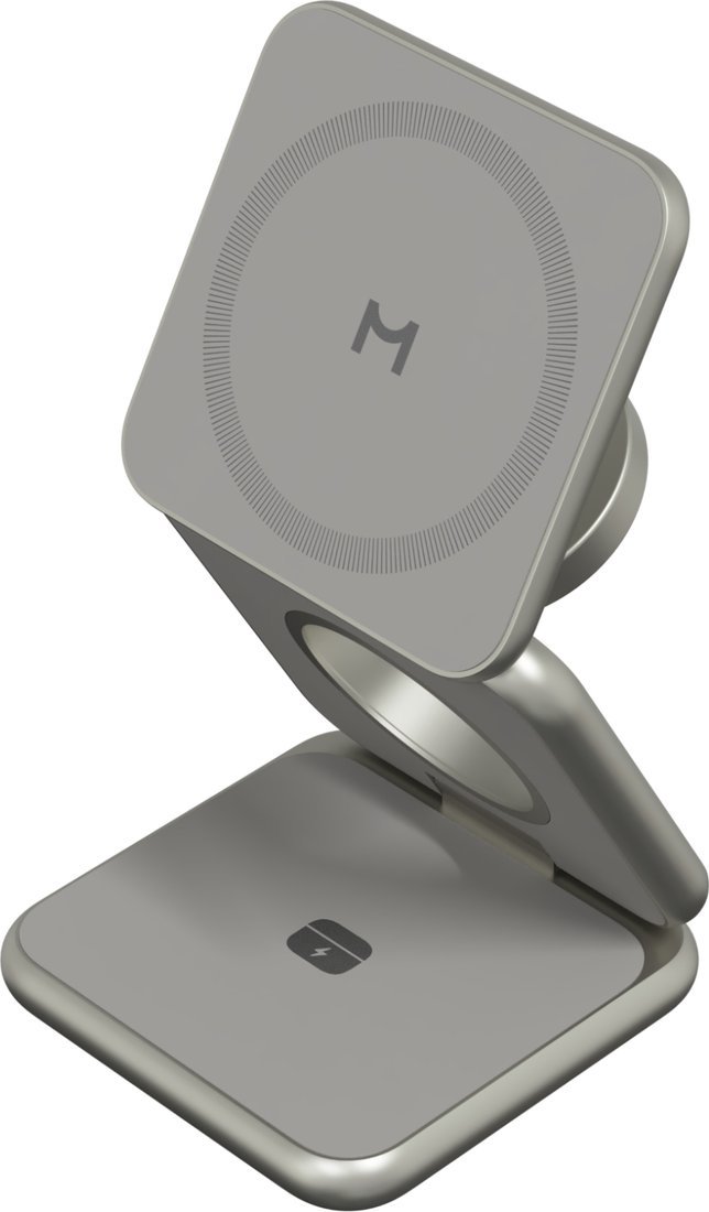 | Информация | - Быстрая беспроводная зарядка мощностью 23 Вт - Зарядка 3х устройств одновременно - Поддержка Qi, Qi2, PD, QC, совместимость с MagSafe - Надежное магнитное крепление класса N52 - Стильный складной и компактный корпус из сплава цинка - Регулируемый угол наклона с надежной фиксацией устройства |