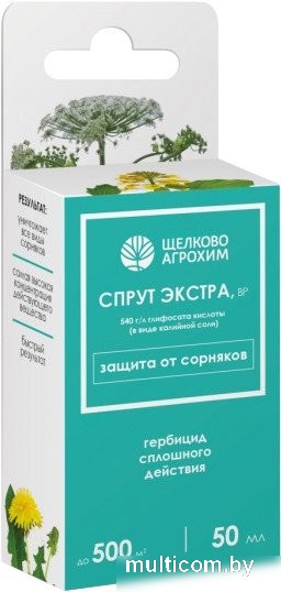 | Информация | Проявляет эффективность при любых положительных температурах воздуха до наступления заморозков Не накапливается в почве Уничтожает все сорняки, древесно-кустарниковую растительность, а также борщевик Сосновского Действие Препарат «Спрут Экстра, ВР» – системный гербицид сплошного действия. Уничтожает все виды травянистой и древесно-кустарниковой растительности. Он отлично впитывается в листья и стебли сорняков, быстро проникая в корневую систему. Спустя 5-7 дней сорняки начинают засыхать и через 2-3 недели полностью погибают. Результат Уничтожает сорняки вместе с корнями Надежно обеспечивает долговременный эффект Уничтожает борщевик Сосновского, все виды сорняков и древесно-кустарниковую растительность |