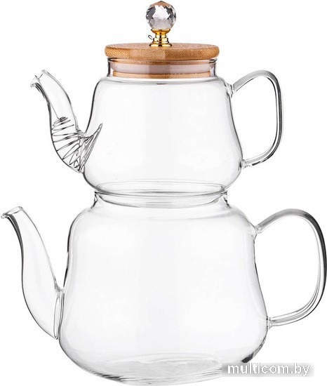 | Информация | Набор для чаепития из 2-х оригинальных стильных чайников, который выдерживает высокую температуру кипящей воды.: нижний чайник объемом 1,5 л используется для кипятка, верхний чайник объемом 630 мл используется как заварочный. В таком наборе заваривание чая или трав особенное, так как происходит процесс настаивания на паровой бане, что позволяет плавно раскрывать и сохранять всю ценность напитка. Изделия выполнены из экологически чистого жаропрочного стекла и подходят для использования на стеклокерамической, электрической варочной поверхности, на газовых плитах необходимо дополнительно использовать рассекатель. Крышка имеет уплотнительное силиконовое кольцо, благодаря которому она надежно фиксируется на чайнике. Фильтр из нержавеющей стали в заварочном чайнике препятствует попаданию трав из чайника в чашку. Ручка имеет очень удобною форму для надежного захвата. Кноб на крышке в форме кристалла из акрила, благодаря бликам и сиянию создает неповторимую уютную, радостную атмосферу во время чаепития. Набор служит украшением стола и будет прекрасным подарком родным и близким. Набор упакован в подарочную упаковку. Внимание: не рекомендуется ставить чайник с холодной жидкостью на раскаленную нагревательную поверхность. Стекло должен прогреться постепенно, чтобы передать тепло по всей поверхности дна равномерно |