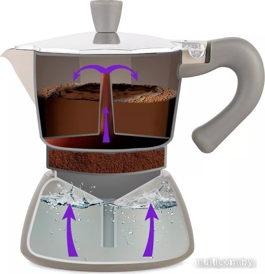 | Информация | ? Кофе за считанные минуты! ? 6 чашек по 40 мл ? Качественная фильтрация кофе ? Подходит для разных видов плит, включая индукционную! ? Легко разбирать и мыть |