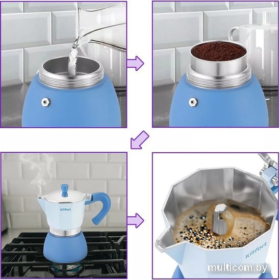 | Информация | ? Кофе за считанные минуты! ? 6 чашек по 40 мл ? Качественная фильтрация кофе ?? Подходит для разных видов плит, включая индукционную! ? Легко разбирать и мыть |