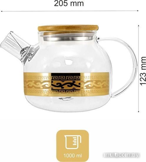 заварочный чайник, материал: стекло, 1000 мл, цвет: золотистый/прозрачный