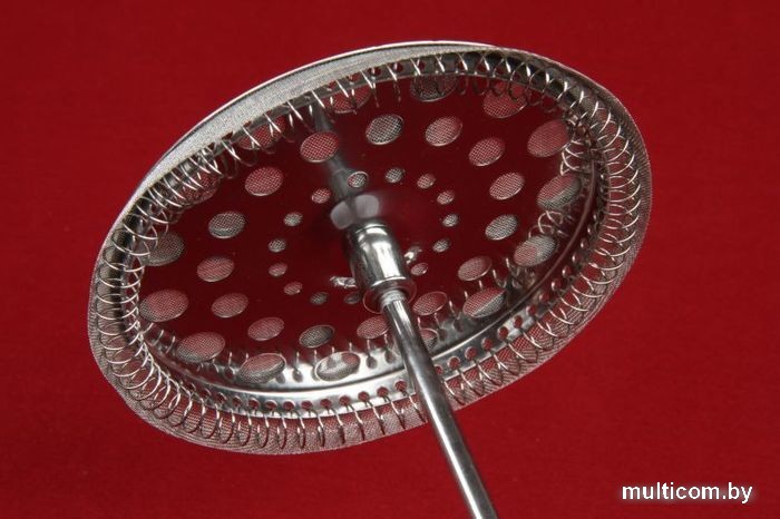 | Информация | Френч-пресс Rosenberg изготовлен из высококачественной нержавеющей стали и термостойкого стекла. Удобная ненагревающаяся ручка. Фильтр-поршень из нержавеющей стали выполнен по технологии ?press-up? для обеспечения равномерной циркуляции воды. Засыпая чайную заварку или кофе под фильтр, заливая горячей водой, вы получаете ароматный напиток с оптимальной крепостью и насыщенностью. Металл с зеркальной полировкой. |